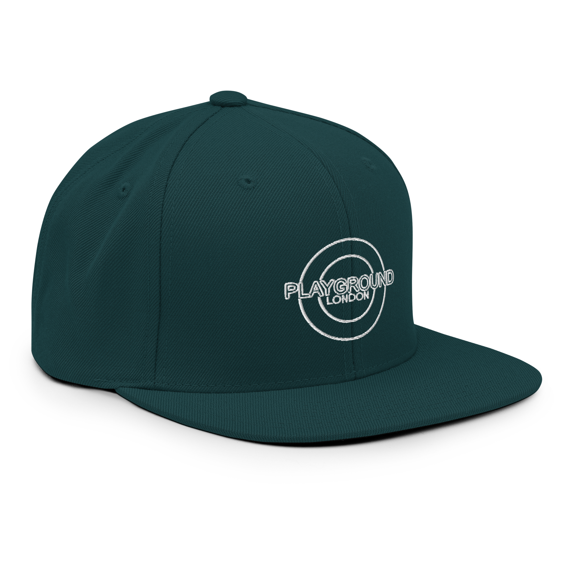 Our London Snapback Hat has our Playground logo embroidered in white on the front. This hat is structured with a classic fit, flat brim, and full buckram. The adjustable snap closure makes it a comfortable, one-size-fits-most hat.